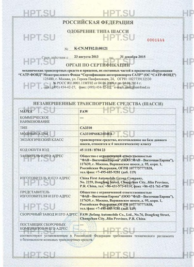 | Тип ТС | CA3310 |