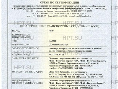 | Экологический класс | транспортное средство, изготовленное на базе данного шасси, относится к 4 эколо… |