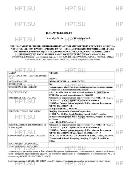 | Экологический класс | транспортное средство, изготовленное на базе данного шасси, относится к 4 экологическому классу |