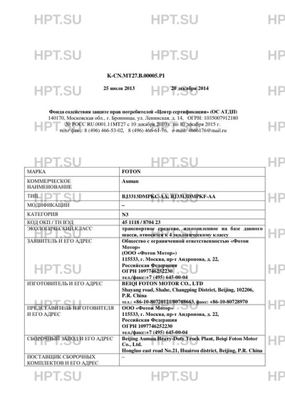 | Номер документа | ТС RU K-CN.МТ27.B.00005.Р1 |