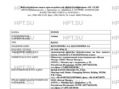 | Коммерческое наименование | Auman; BJ3313DMPKC-AA, BJ3313DMPKF-AA |