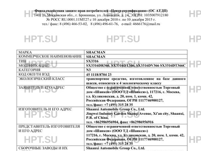 | Марка ТС | SHACMAN |
