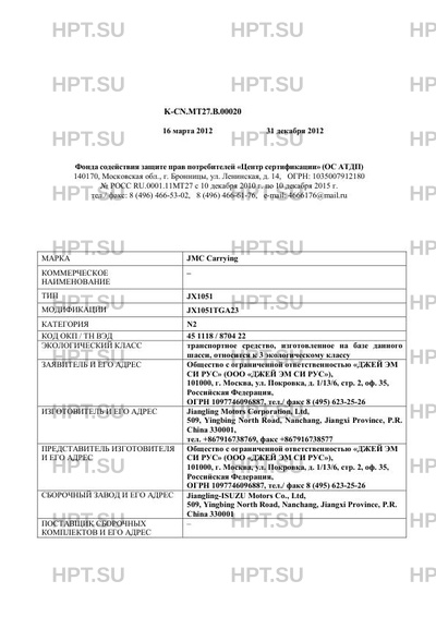 | Сборочный завод | Jiangling-ISUZU Motors Co., Ltd, 509, Yingbing North Road, Nanchang, Jiangxi Province, P.R. China 330001 |