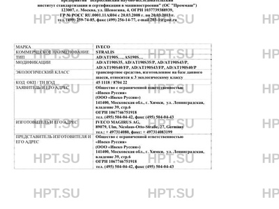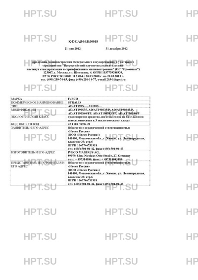 Заявитель Общество с ограниченной ответственностью "Ивеко Руссия" (ООО "Ивеко Руссия") 141400, Московская обл., г. Химки, ул. Ленинградская, владение 39, стр.6 ОГРН 1067746751918 тел. (495) 504-04-42, факс (495) 504-04-43