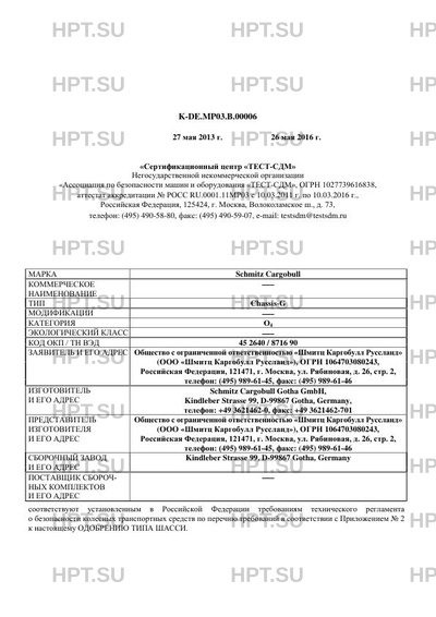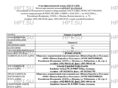 | Предприятие-изготовитель | Schmitz Cargobull Gotha GmbH, Kindleber Strasse 99, D-99867 Gotha, Germany, телефон: +49 362146 |