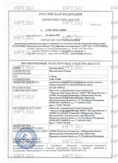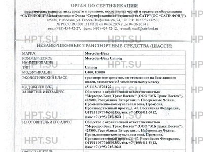 | Заявитель | Общество с ограниченной ответственностью "Мерседес-Бенц Тракс Восток" (ООО "МБ Траке Восток"), 423800, Республика Татарстан* г. Набережные Челны, П ром ы ш лен н о- ко и му н ал ь мая з о н а, ГI р о шов а, Производственный проезд, д. 47, Российская Федерация, ОГРН 1097746596353, тел, +7 (495)411-5412, | фикс +7 (495) 745-2641. |