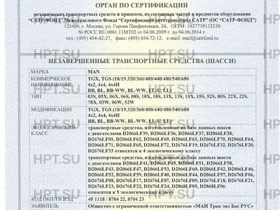 | Коммерческое наименование | TGX, TGS (18/19.320/360/400/440/480/540/680 4x2, 4х4, 4x4H BB, BL, BB-WW, BL-WW… |