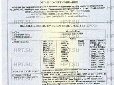 | Экологический класс | транспортное средство, изготовленное на базе данного шасси, относится к экологи… |