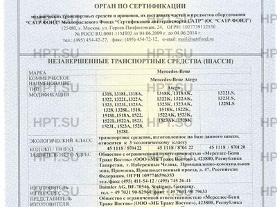 Заявитель Общество с ограниченной ответственностью "Мерседес-Бенц Тракс Bосток" (ООО "МБ Тракс Восток"), 423800, Республика Татарстан, г. Набережные Челны, Промышленная коммульная зона Промзона Производственный проезд, д. 47, Российская Федерация, ОГРН 1097746596353 тел./факс (495) 411-54-12 / (495) 745 26-41