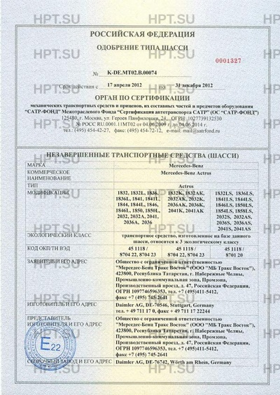 Номер документа ТС RU K-DE.МТ02.В.00074