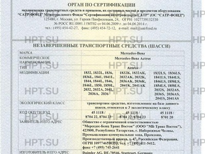 Коммерческое наименование Mercedes- Benz Actros