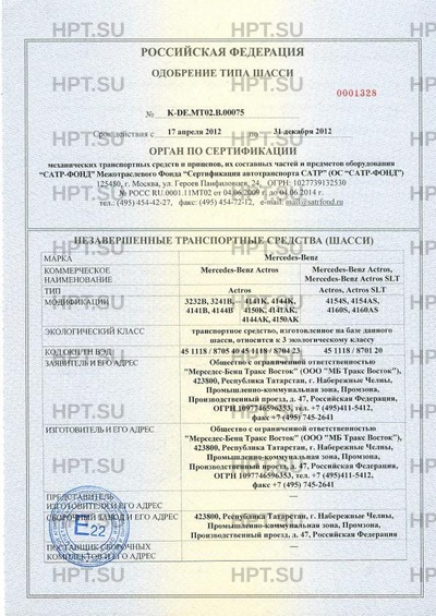 | Экологический класс | транспортное средство, наготовленное на базе данного шасси, относится к 3 эколо… |