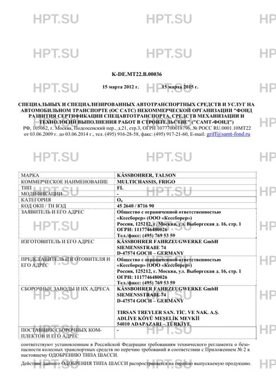 Сборочный завод И ИХ АДРЕСА KSSBOHRER FAHRZEUGWERKE GmbH SIEMENSSTRAE 74 D-47574 GOCH - GERMANY TIRSAN TREYLER SAN. TİC. VE NAK. A.. ADLİYE KY MEELİK MEVKİİ 54010 ADAPAZARI - TRKİYE ПОСТАВ