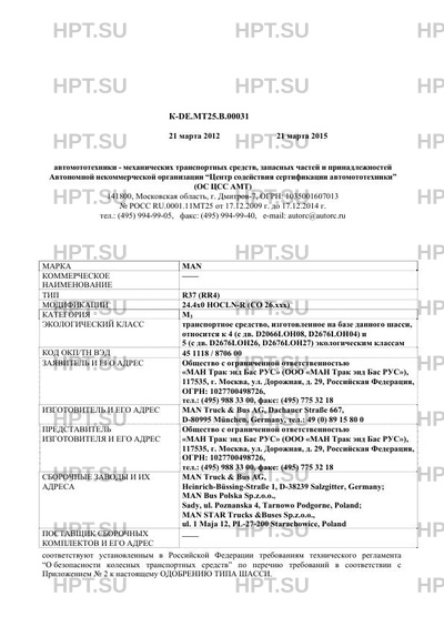 | Заявитель | Общество с ограниченной ответственностью "МАН Трак энд Бас РУС" (ООО "МАН Трак энд Бас РУС"), 117535, г. Москва, ул. Дорожная, д. 29, Российская Федерация, ОГРН: 1027700498726, тел.: (495) 988 33 00, факс: (495) 775 32 18 |