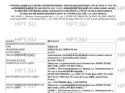 | Заявитель | Общество с ограниченной ответственностью "РЕНО ТРАКС ВОСТОК" (ООО "РТ ВОСТОК"), 141400, г. Московская область, г. Химки, ул. Ленинградская, д. 39, стр. 6, Российская Федерация, ОГРН 1047796838231, тел. (495) 72 |