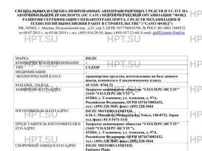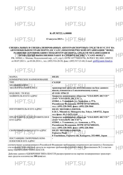 | Представитель изготовителя | Закрытое акционерное общество "СОЛЛЕРС-ИСУЗУ" (ЗАО "СОЛЛЕРС-ИСУЗУ"), 432061, г. Ульяновск, ул. Азовская, д. 97А, Российская Федерация, ОГРН 1071674002432, тел.: (495) 228-3045, факс: (495) 228-3044 |
