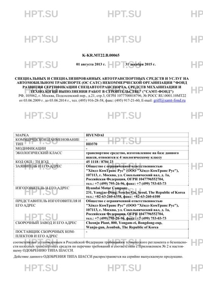 | Заявитель | Общество с ограниченной ответственностью "Хндэ КомТранс Рус" (ООО "Хндэ КомТранс Рус"), 107113, г. Москва, ул. Сокольнический вал, д. 1а, Российская Федерация, ОГРН 1047796552704, тел.: +7 (499) 795-26-96, факс: +7 (499) 75 |