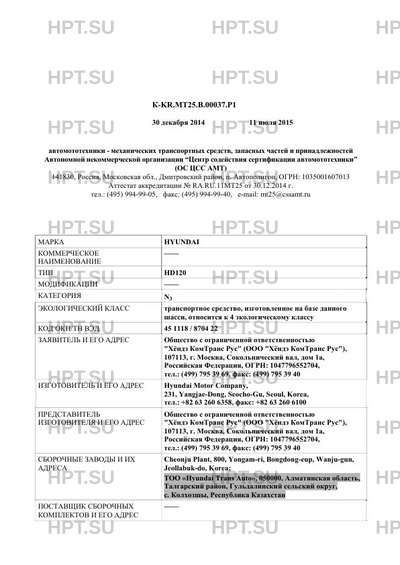 | Сборочный завод | Cheonju Plant, 800, Yongam-ri, Bongdong-eup, Wanju-gun, Jeollabuk-do, Korea; ТОО «Hyundai Trans Auto», 050000, Алматинская область, Талгарский район, Гульдалинский сельский округ, с. Колхозшы, Республика Казахстан |