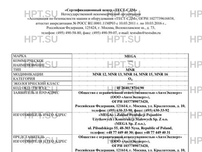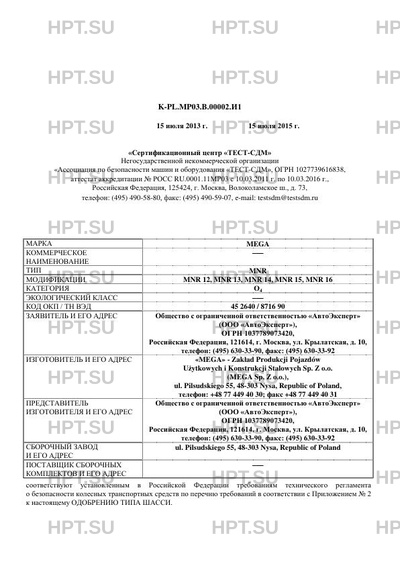 | Предприятие-изготовитель | "MEGA" - Zakad Produkcji Pojazdw Uytkowych i Konstrukcji Stalowych Sp. Z o.o. (MEGA Sp. Z o.o.), ul. Pilsudskiego 55, 48-303 Nysa, Republic of Poland, телефон: +48 77 449 40 30; факс +48 77 449 40 31 |