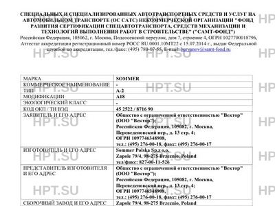| Марка ТС | SOMMER |