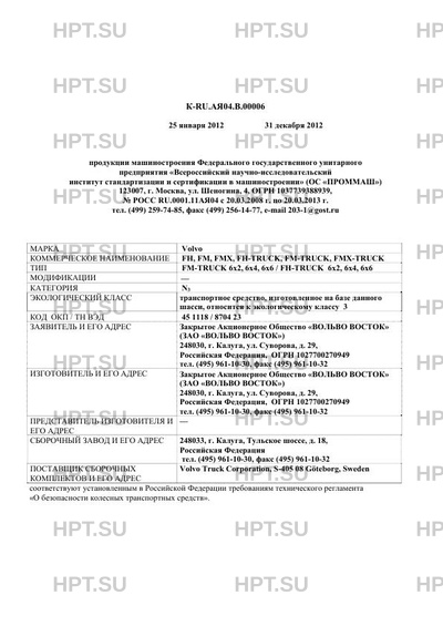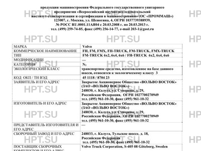 Тип ТС FM-TRUCK 6x2, 6x4, 6x6 / FH-TRUCK 6x2, 6x4, 6x6 маркировка) - - Volvo, FS0910HZ…