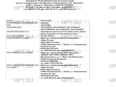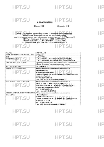 Заявитель Общество с ограниченной ответственностью "Ивеко Руссия" (ООО "Ивеко Руссия") 141400, Московская обл., г. Химки, ул. Ленинградская, владение 39, стр.6 ОГРН 1067746751918 тел. (495) 504-04-42, факс (495) 504-04-43