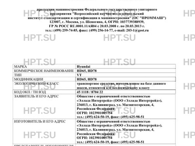 | Тип ТС | HD65, HD78 |