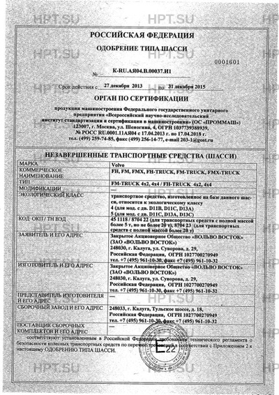 | Заявитель | Закрытое Акционерное Общество "ВОЛЬВО ВОСТОК" (ЗАО "ВОЛЬВО ВОСТОК") 248030, г. Калуга, ул. Суворова, д. 29, Российская Федерация, ОГРН 1027700270949 тел. +7 (495) 961-10-30, факс +7 (495) 961-10-32 |