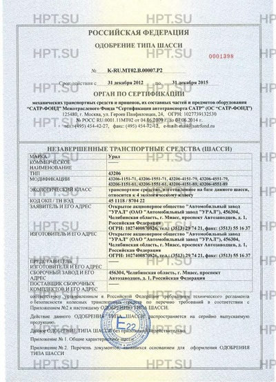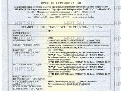 | Предприятие-изготовитель | Открытое акционерное общество "Автомобильный завод "УРАЛ" (ОАО "Автомобильный завод "УРАЛ"), 456304, Челябинская область, г. Миасс, проспект Автозаводцев, д. 1, Российская Федерация ОГРН: 1027400870826, тел.: (3513) 29 74 21, факс: (3513) 55 16 37 |
