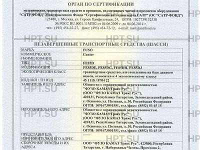 | Заявитель | Общество с ограниченной ответственностью "ФУЗО КАМАЗ Тракс Рус" (ООО "ФУЗО КАМАЗ Тракс Рус"), 420131, Республика Татарстан, Зеленодольский район, с. Осиново, ул. Полевая, д. 30, Российская Федерация ОГРН: 1091673001551, тел./факс: (8552) 53 45 15 |