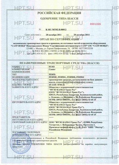 | Предприятие-изготовитель | Общество с ограниченной ответственностью "ФУЗО КАМАЗ Тракс Рус" (ООО "ФУЗО КАМАЗ Тракс Рус"), 420131, Республика Татарстан, Зеленодольский район, с. Осиново, ул. Полевая, д. 30, Российская Федерация ОГРН: 1091673001551, тел./факс: (8552) 53 45 15 |
