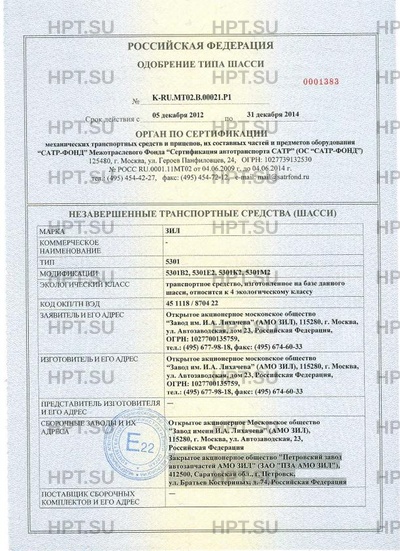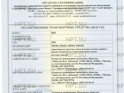 | Предприятие-изготовитель | Открытое акционерное московское общество "Завод им. И.А. Лихачева" (АМО ЗИЛ), 115280, г. Москва, ул. Автозаводская, дом 23, Российская Федерация, ОГРН: 1027700135759, тел.: (495) 677-98-18, факс: (495) 674-60-33 |