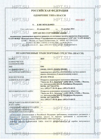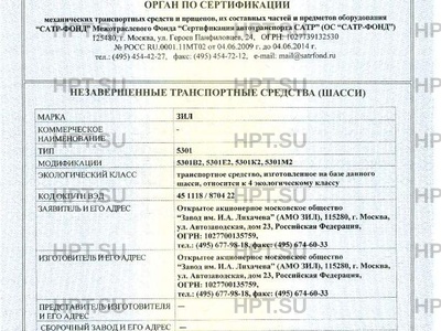 Предприятие-изготовитель Открытое акционерное московское общество "Завод имени И.А. Лихачева" (АМО ЗИЛ) Россия, 115280, г. Москва, ул. Автозаводская, 23 ОГРН: 1027700135759; тел.: (495) 677-9528, факс: (495) 674-6033