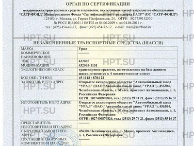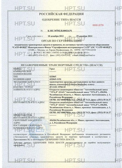 | Предприятие-изготовитель | Открытое акционерное общество "Автомобильный завод "УРАЛ" (ОАО "Автомобильный завод "УРАЛ"), 456304, Челябинская область, г. Миасс, проспект Автозаводцев, д. 1, Российская Федерация ОГРН: 1027400870826, тел.: (3513) 29 74 21, факс: (3513) 55 16 37 |