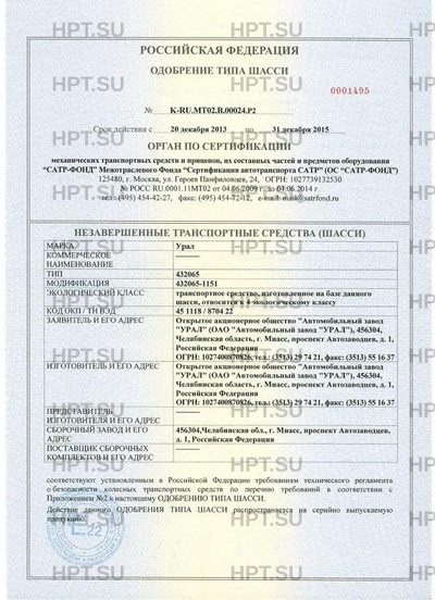| Предприятие-изготовитель | Открытое акционерное общество "Автомобильный завод "УРАЛ" (ОАО "Автомобильный завод "УРАЛ"), 456304, Челябинская область, г. Миасс, проспект Автозаводцев, д. 1, Российская Федерация ОГРН: 1027400870826, тел.: (3513) 29 74 21, факс: (3513) 55 16 37 |