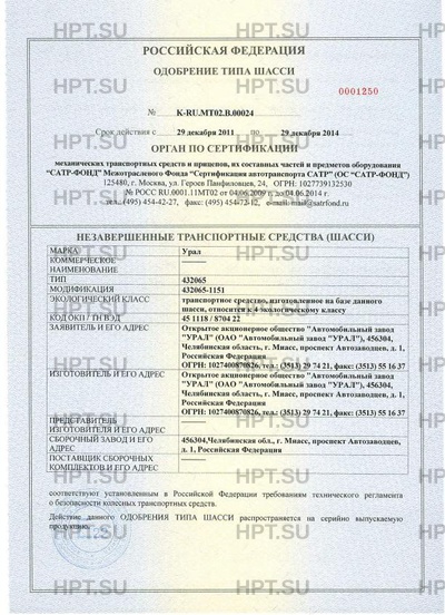 | Предприятие-изготовитель | Открытое акционерное общество "Автомобильный завод "УРАЛ" (ОАО "Автомобильный завод "УРАЛ"), 456304, Челябинская область, г. Миасс, проспект Автозаводцев, д. 1, Российская Федерация ОГРН: 1027400870826, тел.: (3513) 29 74 21, факс: (3513) 55 16 37 |