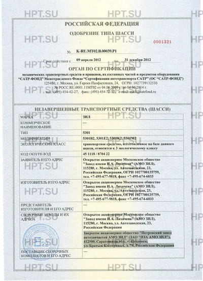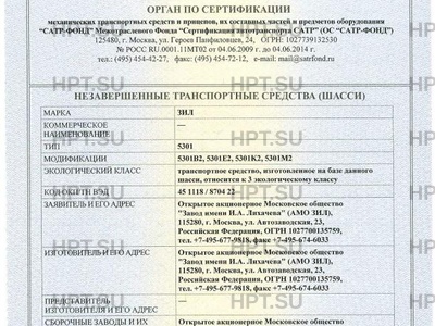| Предприятие-изготовитель | Открытое акционерное Московское общество "Завод имени И.А. Лихачева" (АМО ЗИЛ), 115280, г. Москва, ул. Автозаводская, 23, Российская Федерация, ОГРН 1027700135759, тел. +7-495-677-9818, факс +7-495-674-6033 |