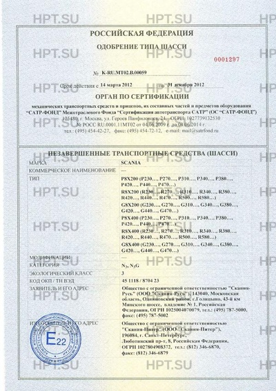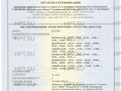 | Сборочный завод | ООО "Скания-Питер"), 196084, г. Caнкт-Петербург, Люботинский пр-т, 8, Российская Федерация, ОГРН 1027804908372, тел": (812) 346-6870; факс: (812) 346-6879 |