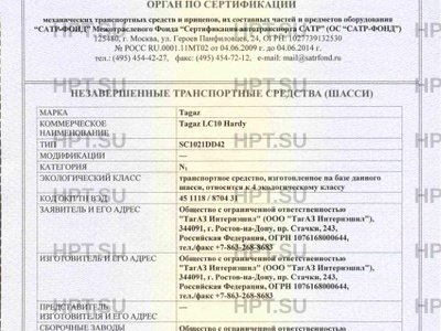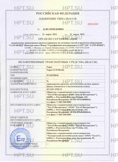 | Сборочный завод | Общество с ограниченной ответственностью "ТагАЗ Интернэшнл" (ООО "ТагАЗ Интернэшнл"), 344091, г. Ростов-на-Дону, пр. Стачки, 243, Российская Федерация; Общество с ограниченной ответственностью "Таганрогский автомобильный завод" (ООО "ТагАЗ"), 344011, г. Ростов-на-Дону, пер. Халтуринский, 99, Российская Федерация |