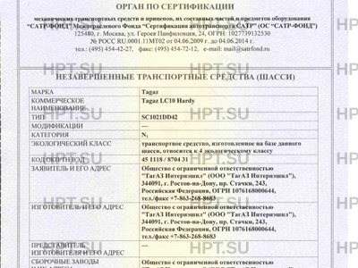 | Коммерческое наименование | Tagaz LC10 Hardy; SC1021DD42 |