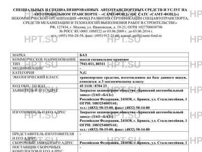 Предприятие-изготовитель Закрытое акционерное общество "Брянский автомобильный завод" (ЗАО "БАЗ") Российская Федерация, 241038, г. Брянск, ул. Сталелитейная, 1 ОГРН: 1083254005141; тел.: (4832) 58-15-00, факс: (4832) 58-14-80
