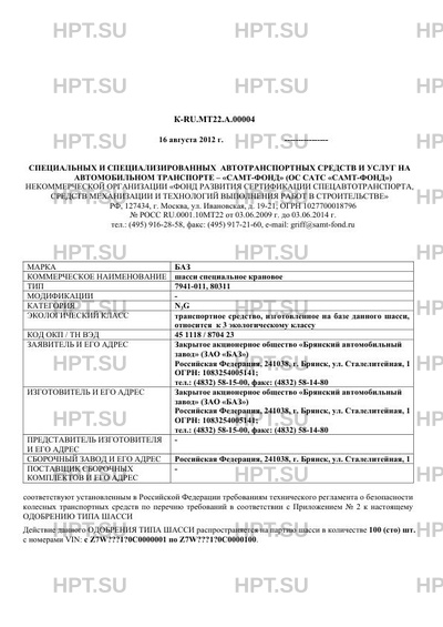 Заявитель Закрытое акционерное общество "Брянский автомобильный завод" (ЗАО "БАЗ") Российская Федерация, 241038, г. Брянск, ул. Сталелитейная, 1 ОГРН: 1083254005141; тел.: (4832) 58-15-00, факс: (4832) 58-14-80