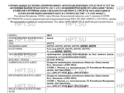 | Предприятие-изготовитель | Открытое акционерное московское общество "Завод имени И.А. Лихачева" (АМО ЗИЛ), 115280, г. Москва, ул. Автозаводская, 23, Российская Федерация; ОГРН: 1027700135759; тел.: (495) 677-9528, факс: (495) 674-6033 |