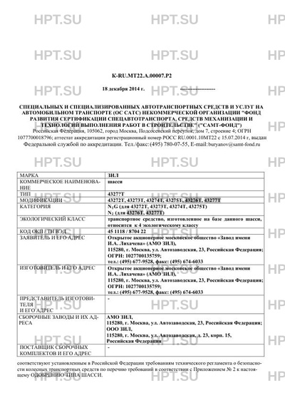 | Категория ТС | N2G (для 43272Т, 43273Т, 43274Т, 43275Т) N2 (для 43276Т, 43277Т) |