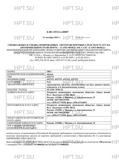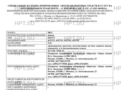 Предприятие-изготовитель Открытое акционерное московское общество "Завод имени И.А. Лихачева" (АМО ЗИЛ) Россия, 115280, г. Москва, ул. Автозаводская, 23 ОГРН: 1027700135759; тел.: (495) 677-9528, факс: (495) 674-6033