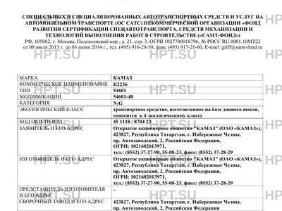 | Марка ТС | КАМАЗ |