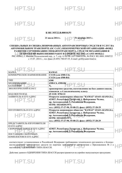 | Предприятие-изготовитель | Открытое акционерное общество "КАМАЗ" (ОАО "КАМАЗ"), 423827, Республика Татарстан, г. Набережные Челны, пр. Автозаводский, 2, Российская Федерация, ОГРН: 1021602013971, тел.: (8552) 37-27-90, 55-08-23, факс: (8552) 37-28-29 |