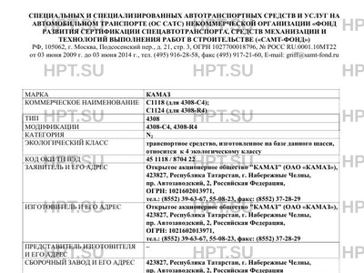| Предприятие-изготовитель | Открытое акционерное общество "КАМАЗ" (ОАО "КАМАЗ"), 423827, Республика Татарстан, г. Набережные Челны, пр. Автозаводский, 2, Российская Федерация, ОГРН: 1021602013971, тел.: (8552) 39-6 |