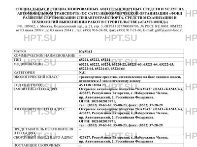| Предприятие-изготовитель | Открытое акционерное общество "КАМАЗ" (ОАО "КАМАЗ"), 423827, Республика Татарстан, г. Набережные Челны, пр. Автозаводский, 2, Российская Федерация, ОГРН: 1021602013971, тел.: (8552) 39-6 |