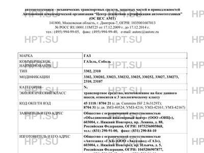 | Сборочный завод | Общество с ограниченной ответственностью «Автозавод «ГАЗ», 603004, г. Нижний Новгород, пр. Ильича, д. 5, Российская Федерация |